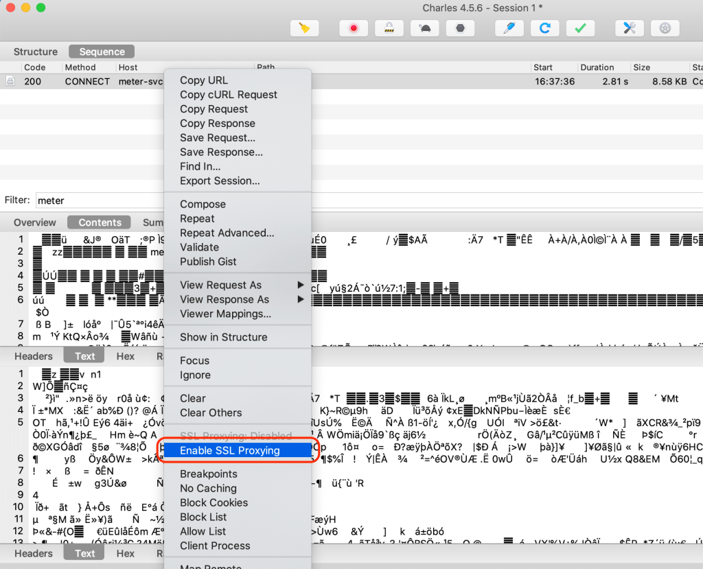 Open a browser -> go to any HTTPS enabled website you like -> open Charles and right click on a specific Request -> select “Enable SSL Proxying”