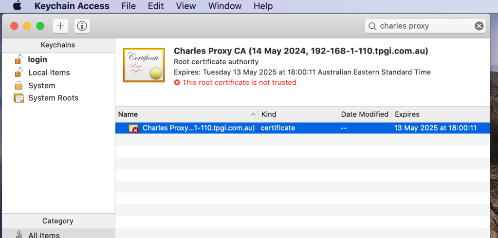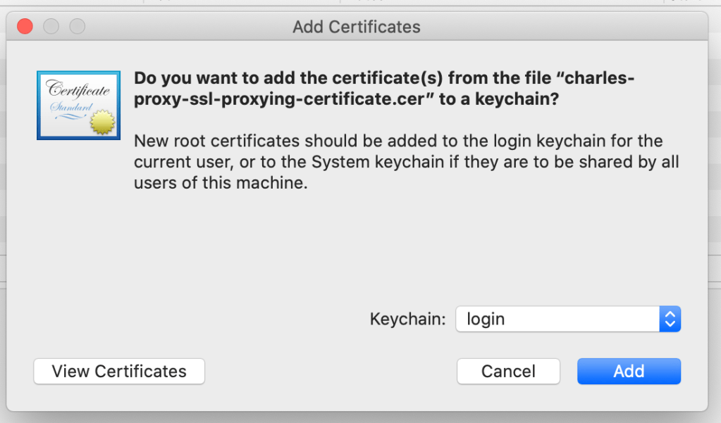 The root certificate is the magic ingredient that allows Charles to decrypt HTTPS traffic. This certificate allows your MacBook to give Charles permission to decrypt and view all HTTPS traffic (in plain text) that flows in and out of your machine