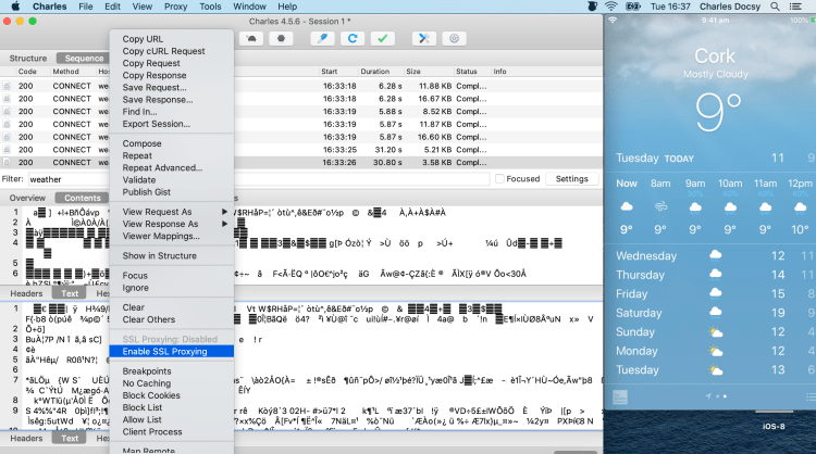 Return to your Mac, right click the network request you are interested in and click the “Enable SSL Proxying” option
