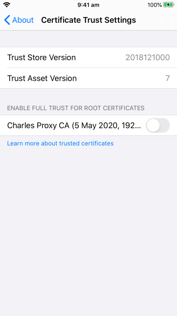 On the device, tap Settings -> General -> Certificate Trust Settings -> Enable the toggle/switch for the Charles Proxy certificate