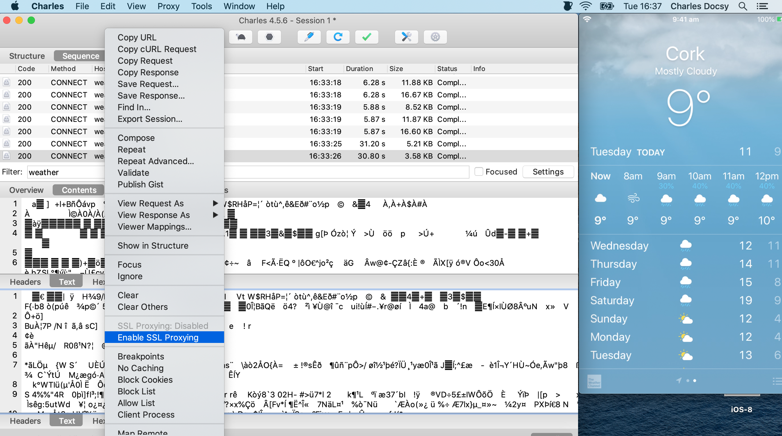 Return to your Mac, right click the network request you are interested in and click the “Enable SSL Proxying” option