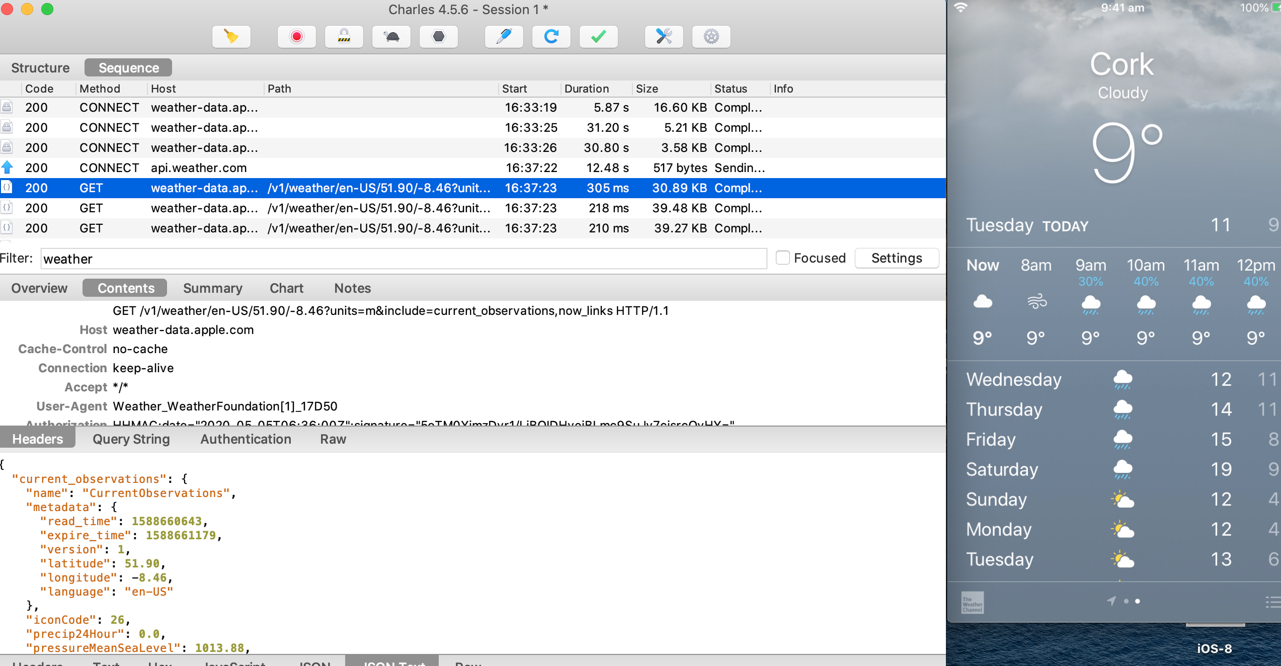 Kill and re-launch the Weather app. You should now see the network traffic in plain text!