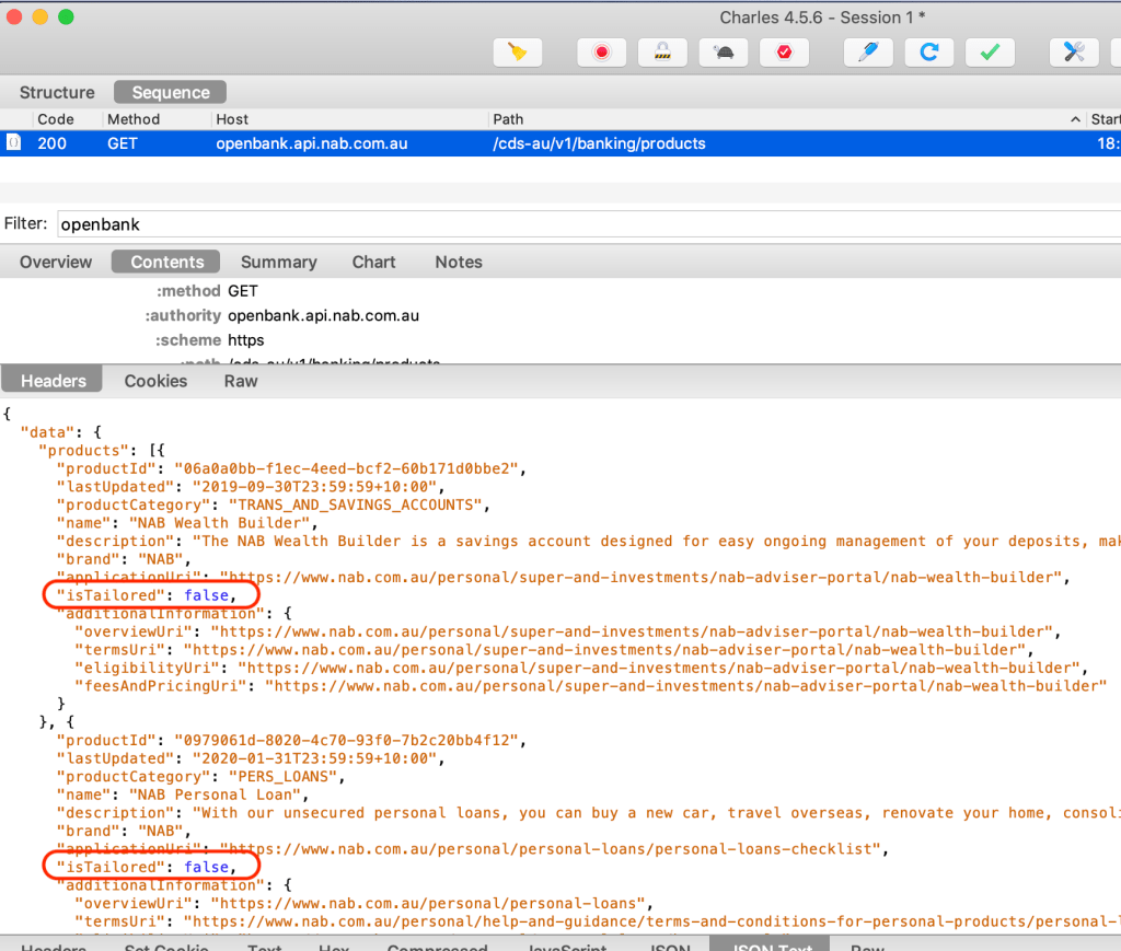 We want to find every instance in the Response body where the “isTailored” property is set to TRUE and then change it’s value to FALSE. The next step will explain how to do this