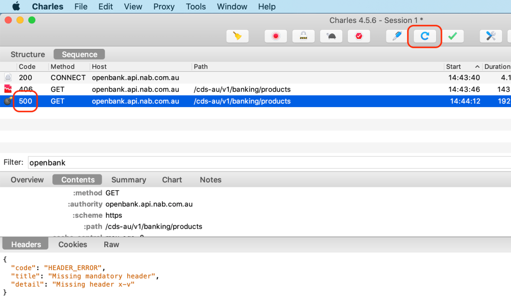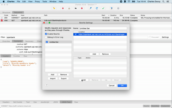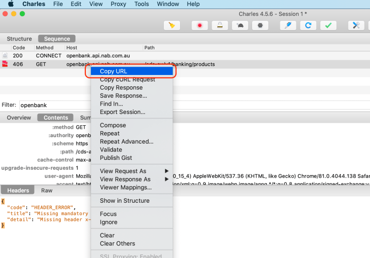 In Charles, right click the OpenBank request and click the “Enable SSL Proxying” option