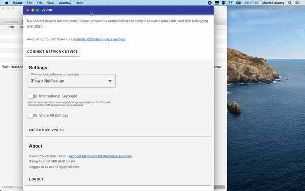 Once installed, open Vysor. After you’ve connected your device and allowed USB debugging, you should see your device appear at the top the Vysor screen. Tap the ‘View’ button