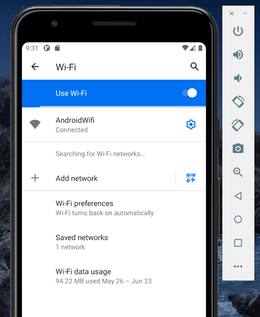 As your emulator is already running on your laptop it is just uses the same wifi network your laptop uses under the hood. This is the only thing to be aware of